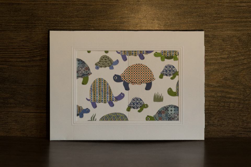 | Kulissenkarte mit Tiefenwirkung: Die Seitenteile der Karte werden aufgezogen, die Kulisse »Chillkröte« wird sichtbar.