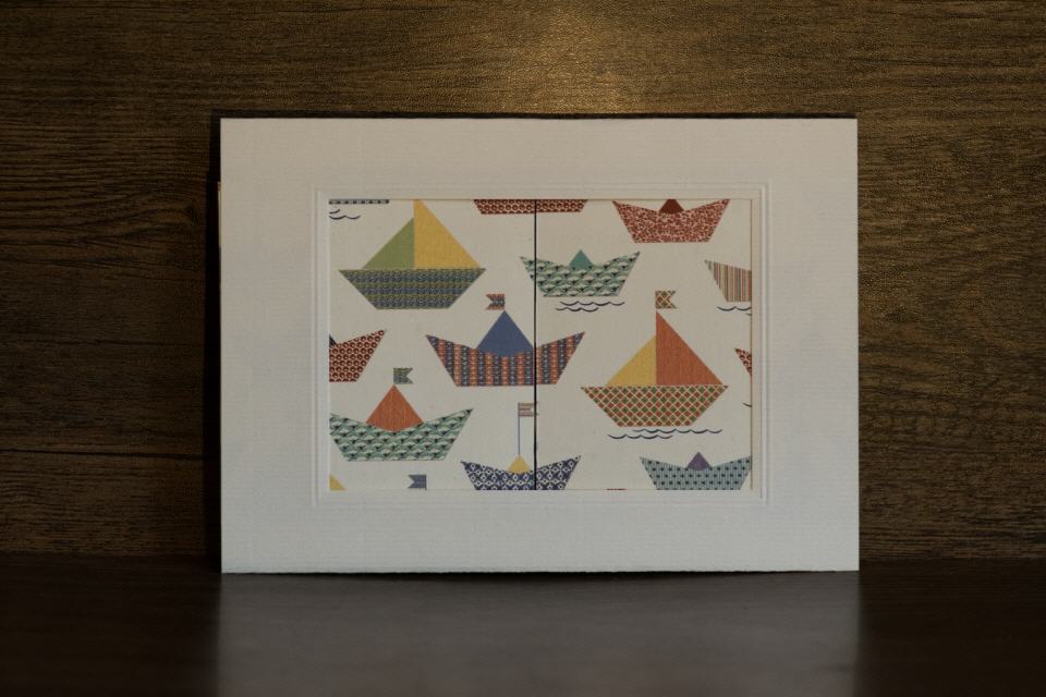 | Kulissenkarte mit Tiefenwirkung: Die Seitenteile der Karte werden aufgezogen, die Kulisse mit den Segelbooten wird sichtbar.