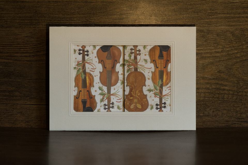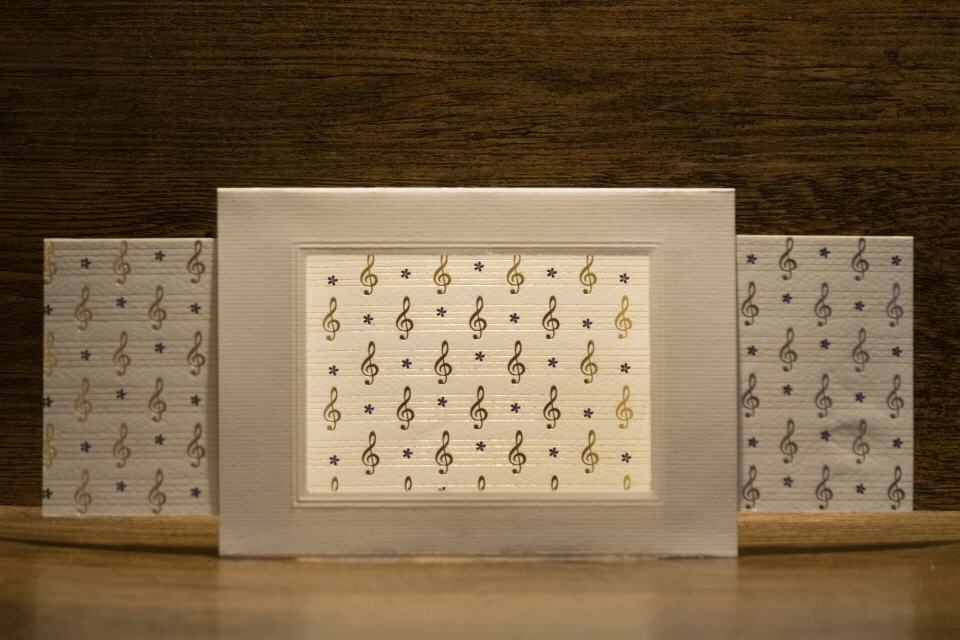 | Kulissenkarte mit Tiefenwirkung: Die Seitenteile der Karte werden aufgezogen, die Kulisse »Himmel voller Geigen« wird sichtbar.