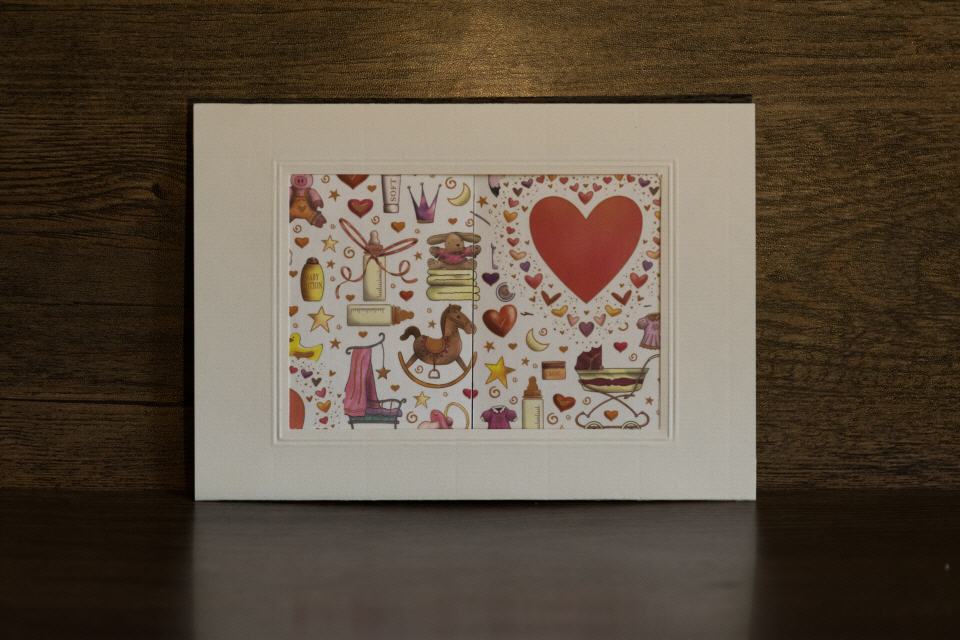 | Kulissenkarte mit Tiefenwirkung: Die Seitenteile der Karte werden aufgezogen, die Kulisse »It's a girl« wird sichtbar.