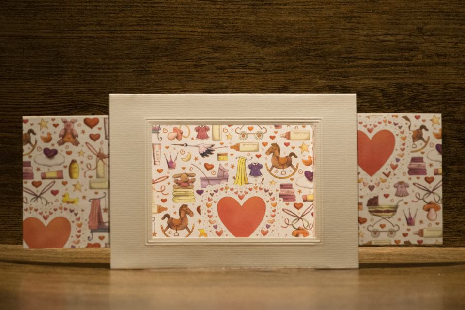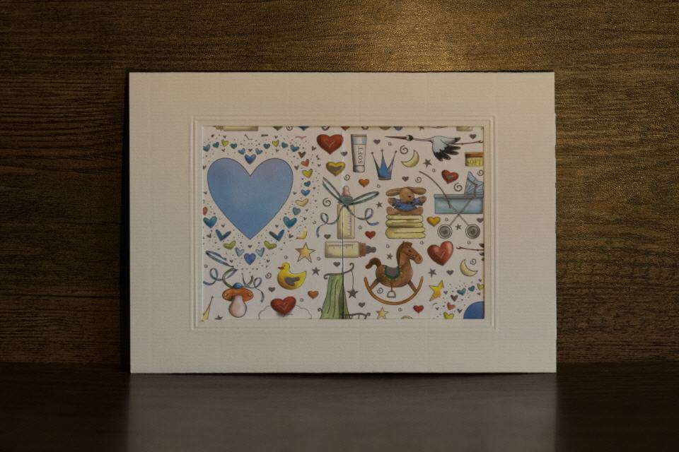 | Kulissenkarte mit Tiefenwirkung: Die Seitenteile der Karte werden aufgezogen, die Kulisse »It's a boy« wird sichtbar.