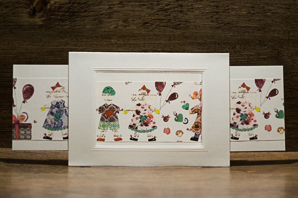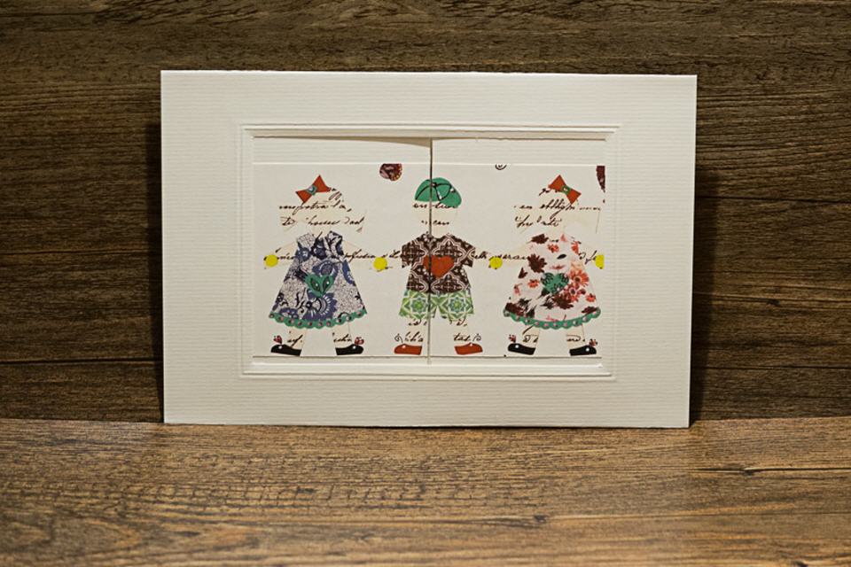 | Kulissenkarte mit Tiefenwirkung: Die Seitenteile der Karte werden aufgezogen, die Kulisse mit dem Ringelreigen wird sichtbar.