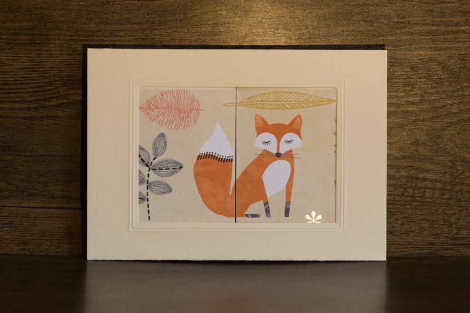 | Kulissenkarte mit Tiefenwirkung: Die Seitenteile der Karte werden aufgezogen, die Kulisse »Füchslein« wird sichtbar.
